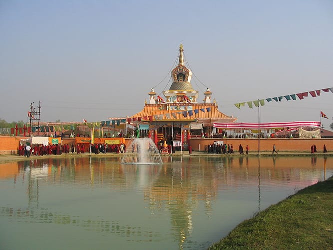 Derzeit hält sich eine Gruppe von Mönchen des Drigung Rinchen Palri Klosters (Kathmandu) ständig auf dem Gelände des Großen Lotus Stupa auf, die eine fundierte Ausbildung in allen Bereichen der buddhistischen Theorie und Praxis erhalten haben und täglich ihren religiösen Verpflichtungen nachgehen. Darüber hinaus wird seit 2006 am Großen Lotus Stupa alljährlich ein mehrtätiges Gebet für den Frieden in der Welt abgehalten. Der Stupa-Komplex – eine friedvolle und wunderschöne Anlage am Geburtsort des historischen Buddhas an einem der wichtigsten Plätze des Buddhismus – ist inzwischen zu einem Pilgerort gewachsen, den regelmäßig viele tausend Pilger aus allen Teilen der Welt besuchen.